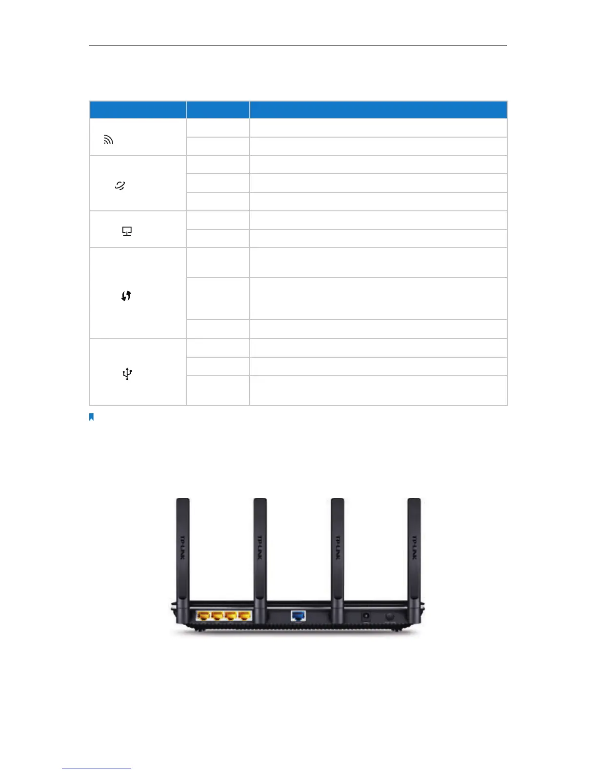 The router’s back panel shows the connection ports, buttons and antennas (view from