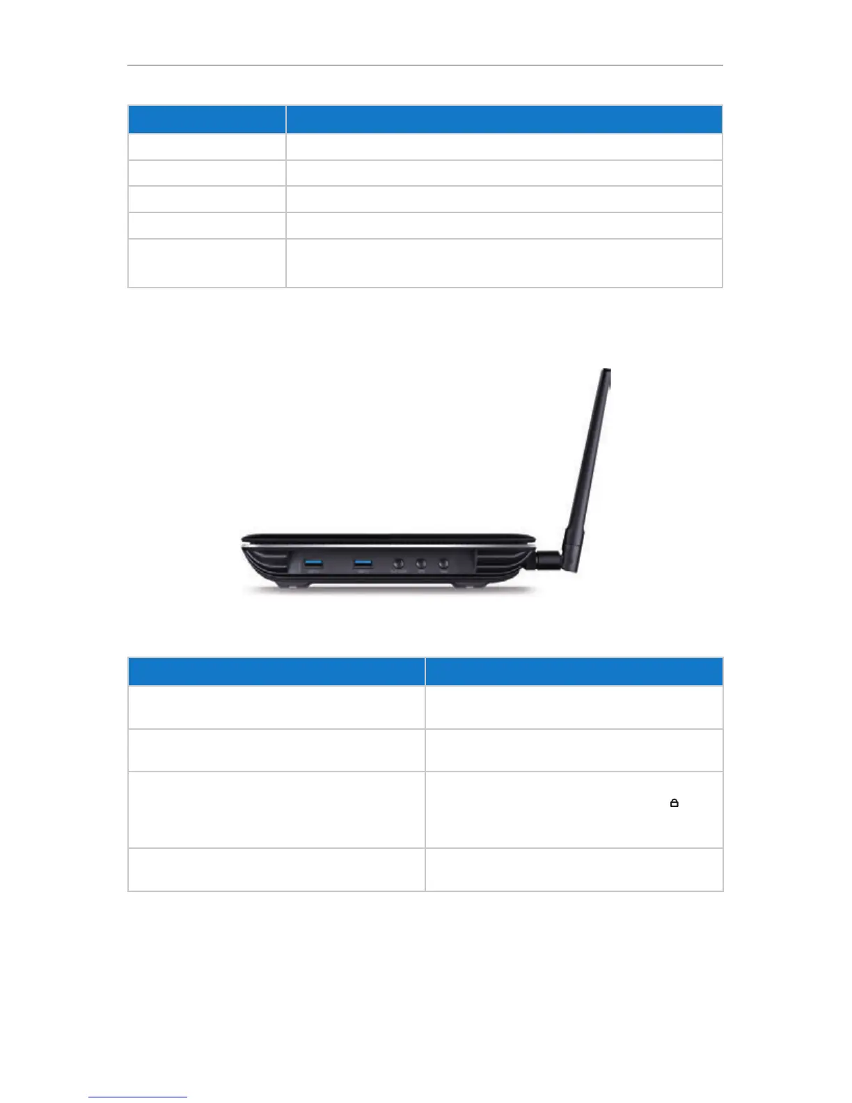 The router’s side panel shows the USB ports and buttons (view from left to right). Refer