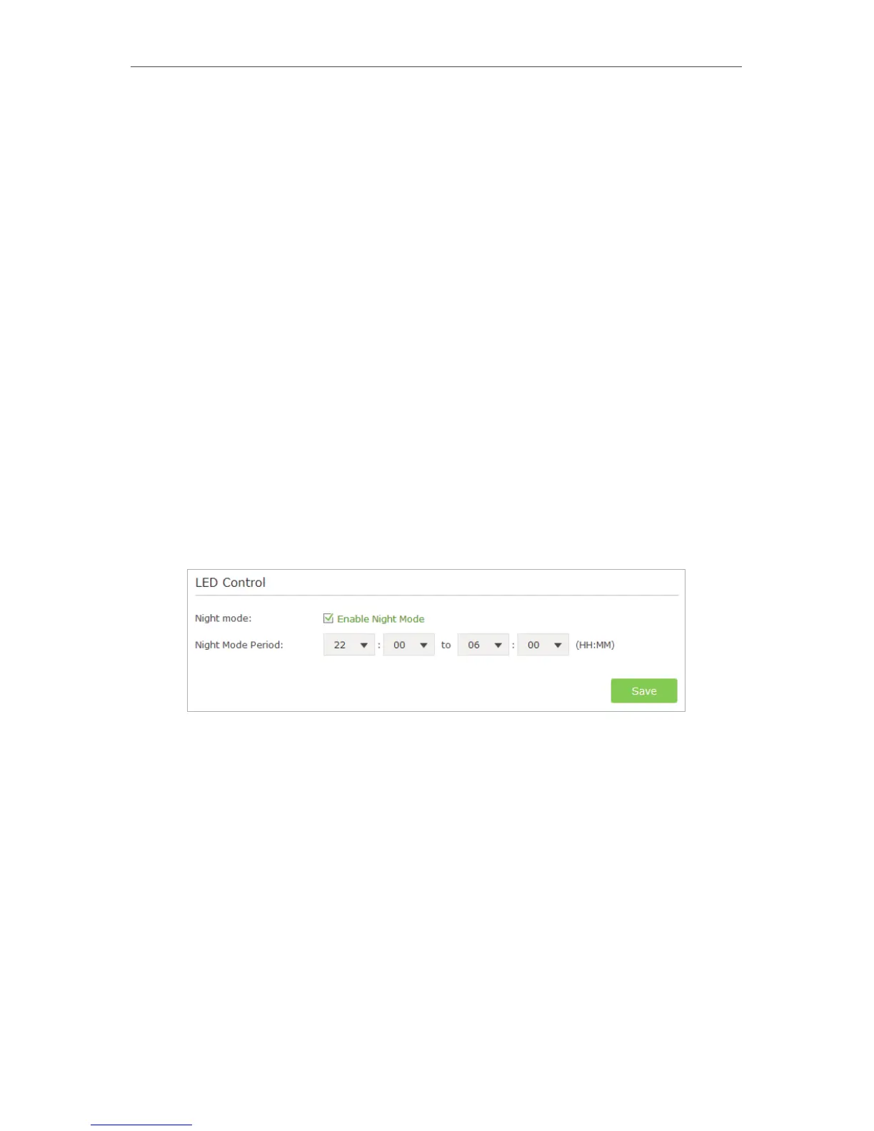 3 ) In the LED Control section, select the Enable Night Mode checkbox.