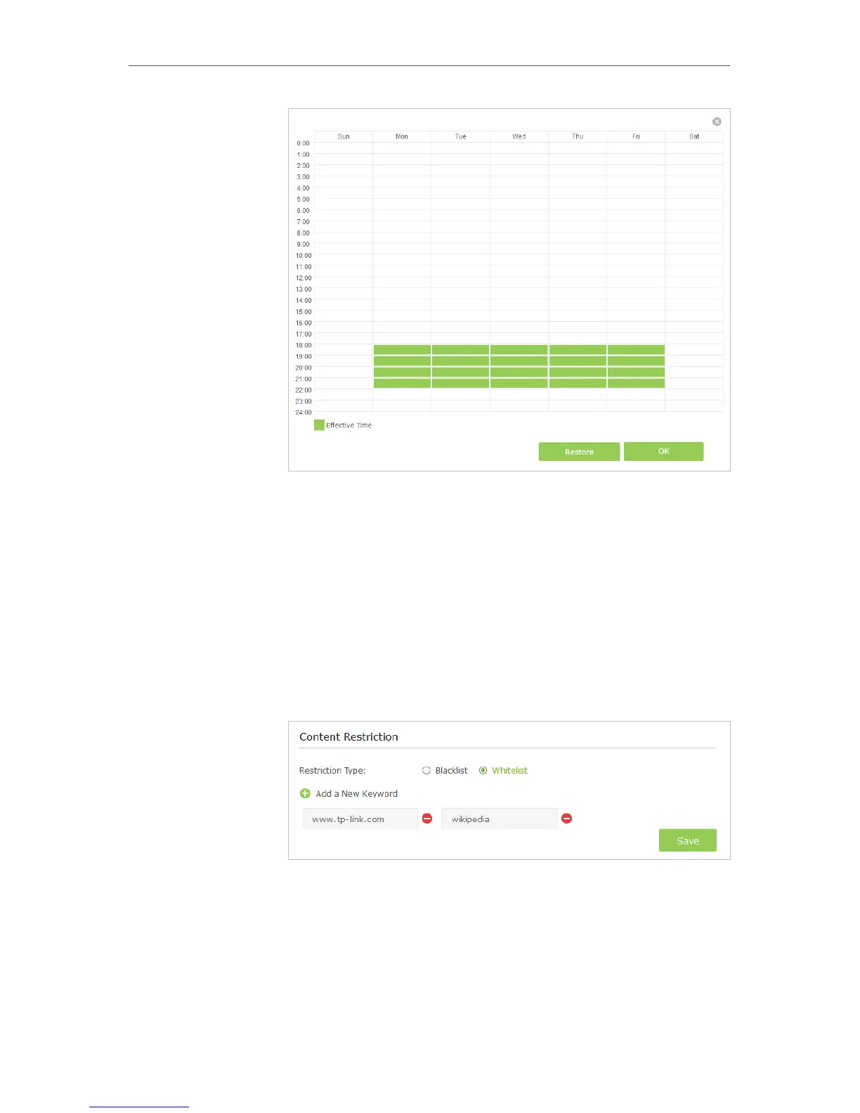 Blacklist and Whitelist. Below are some sample entries to
