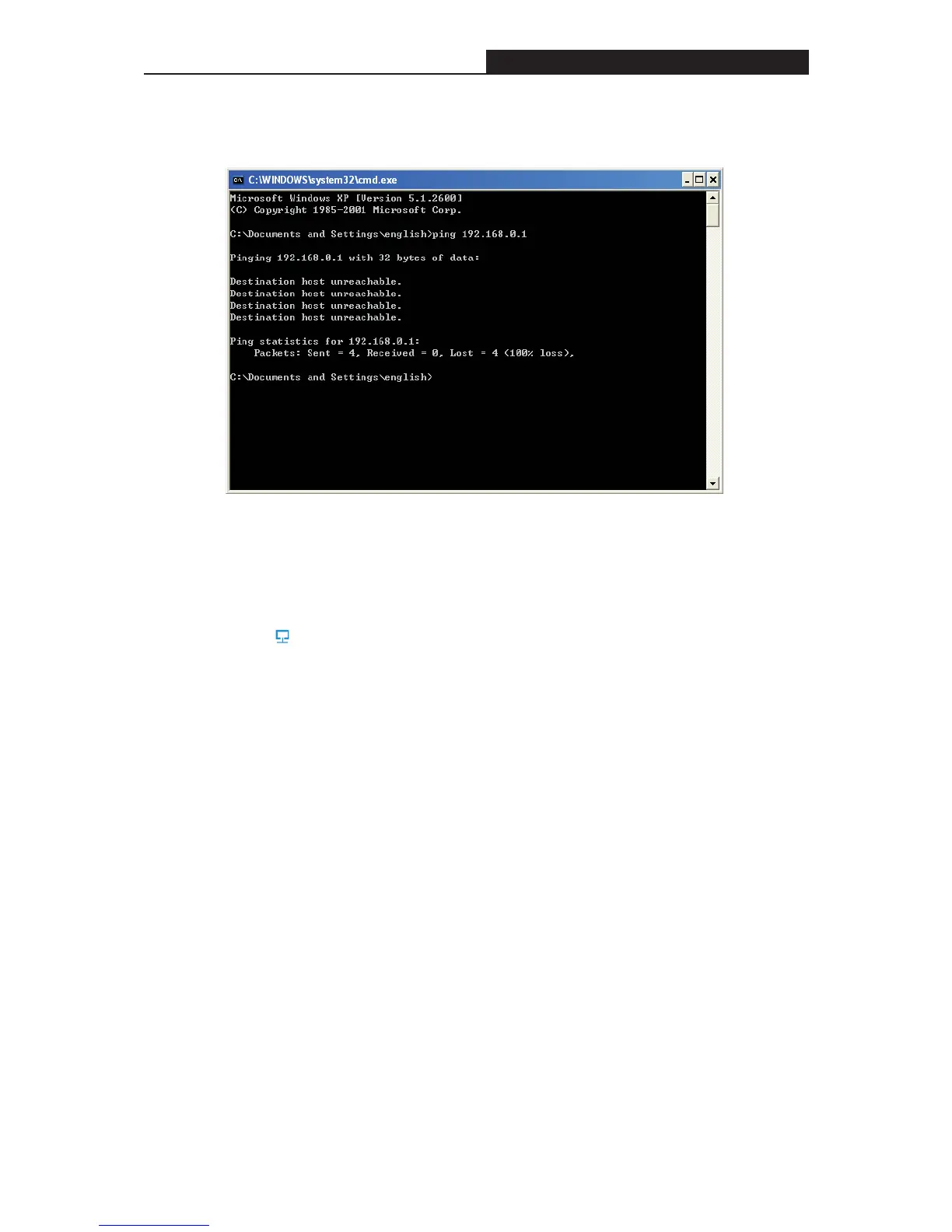 prompt, and type ping 192.168.1.1, and then press Enter.