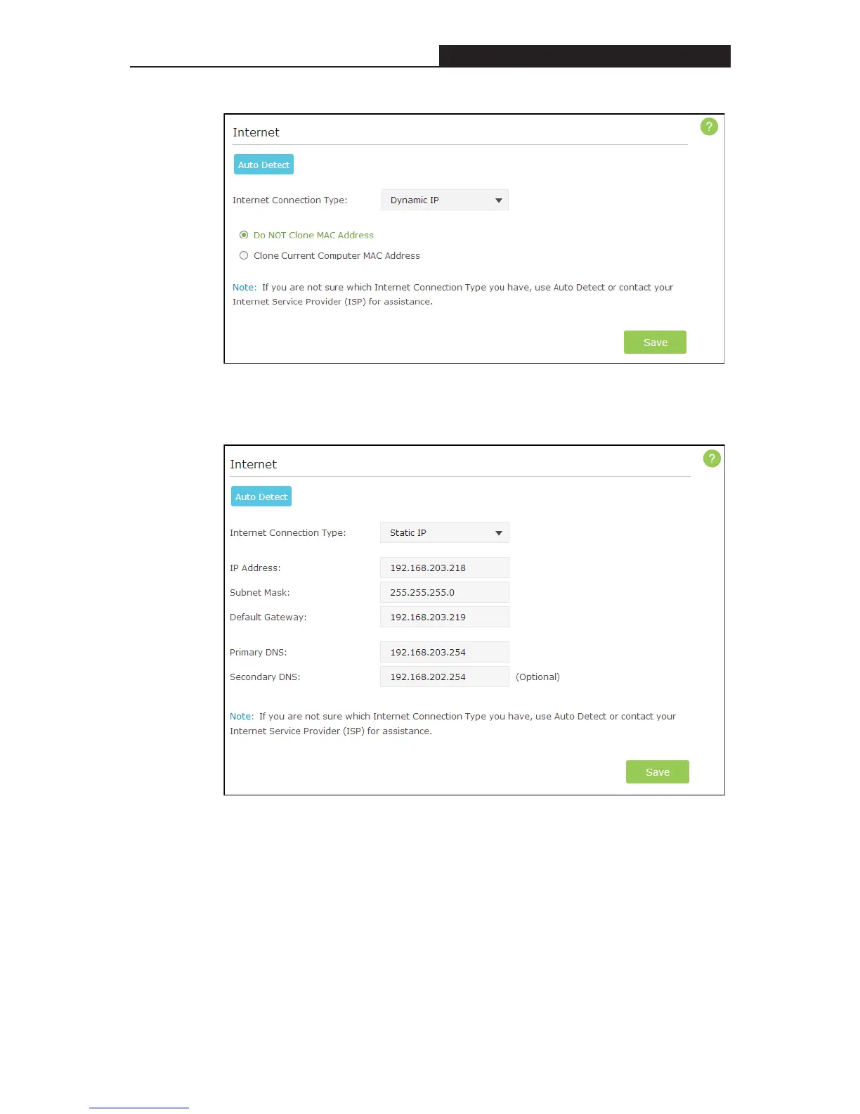 If you choose Static IP, enter the information provided by your ISP in the