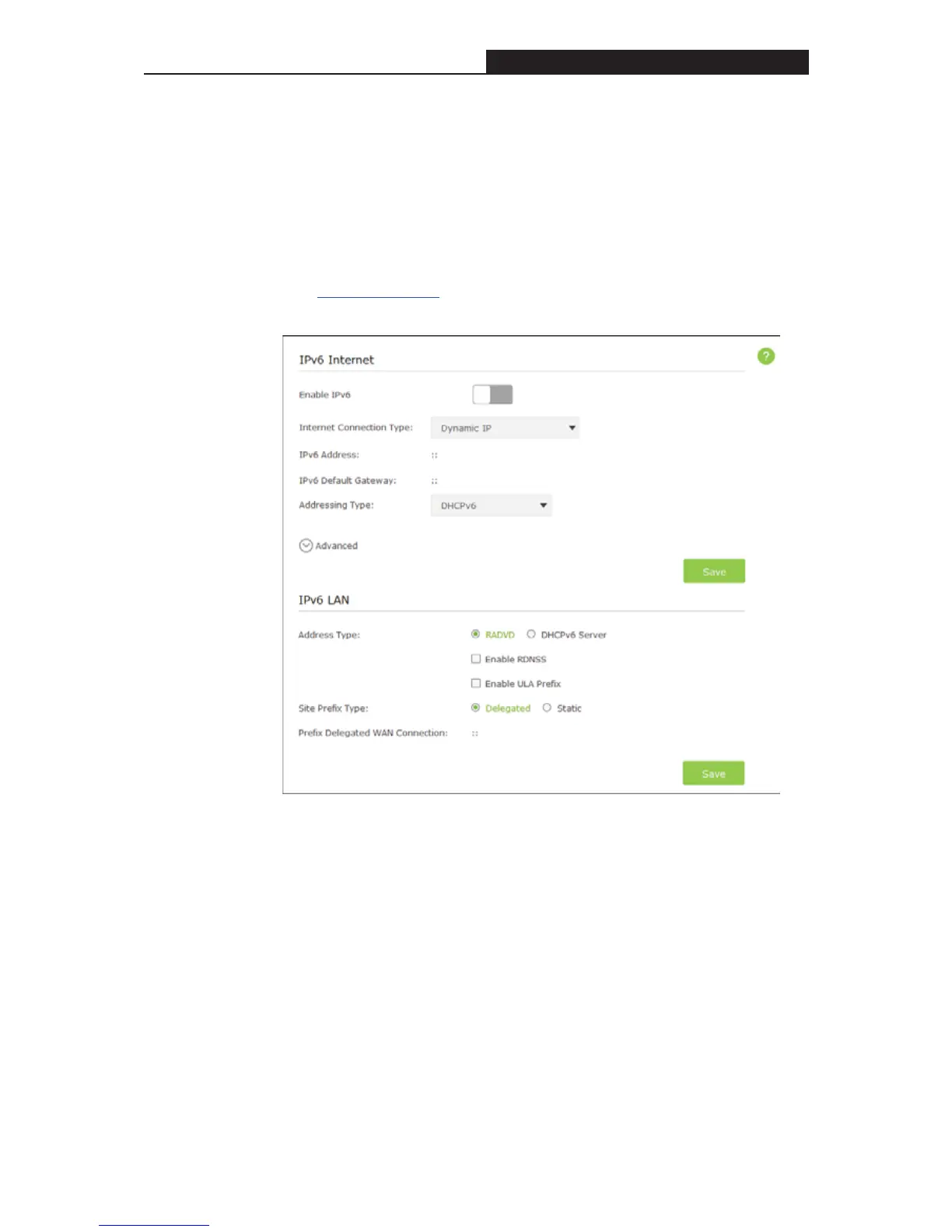 3. Enable IPv6, and select the Internet connection type provided by ISP.