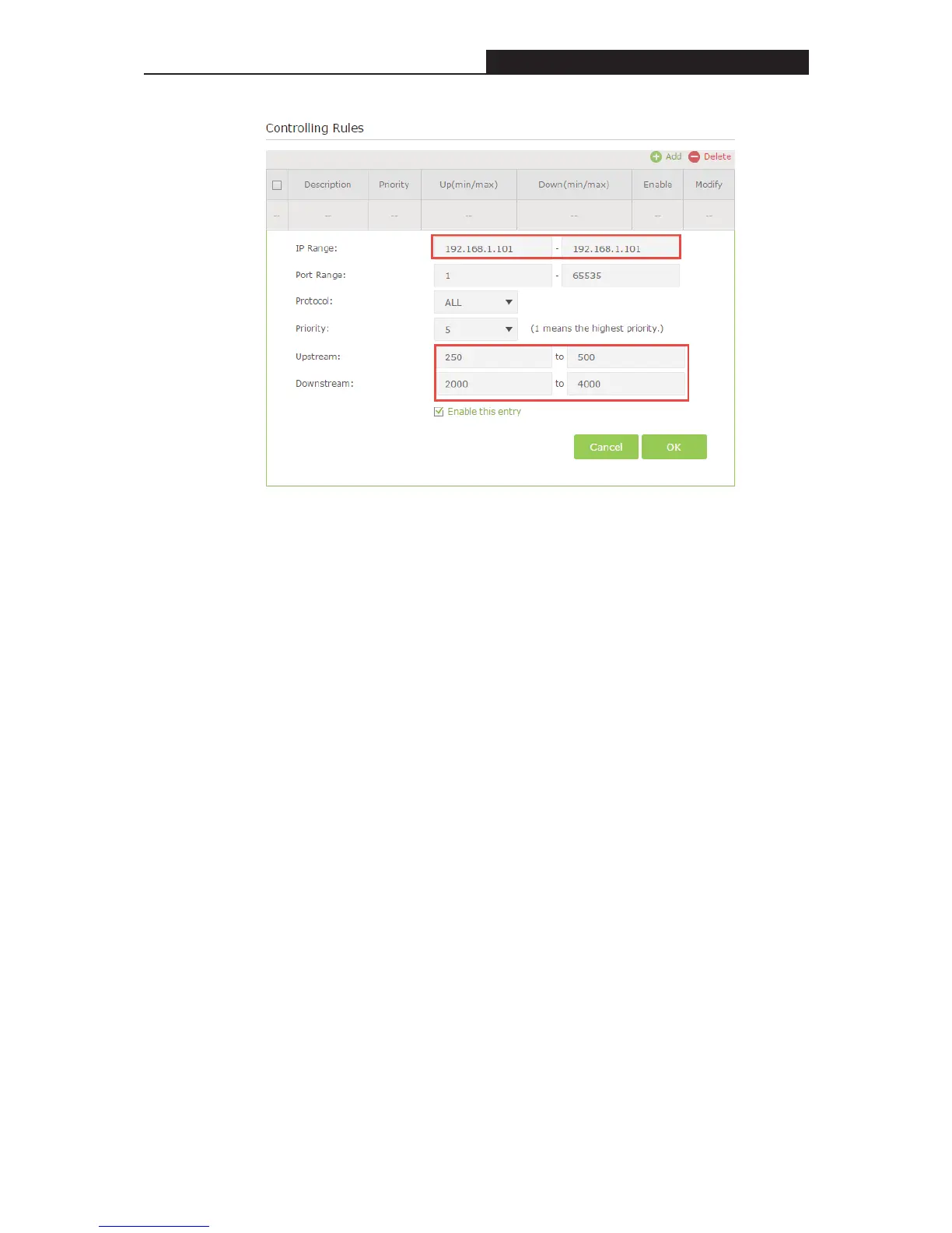 Upstream/Downstream-Enter the bandwidth according to your division.