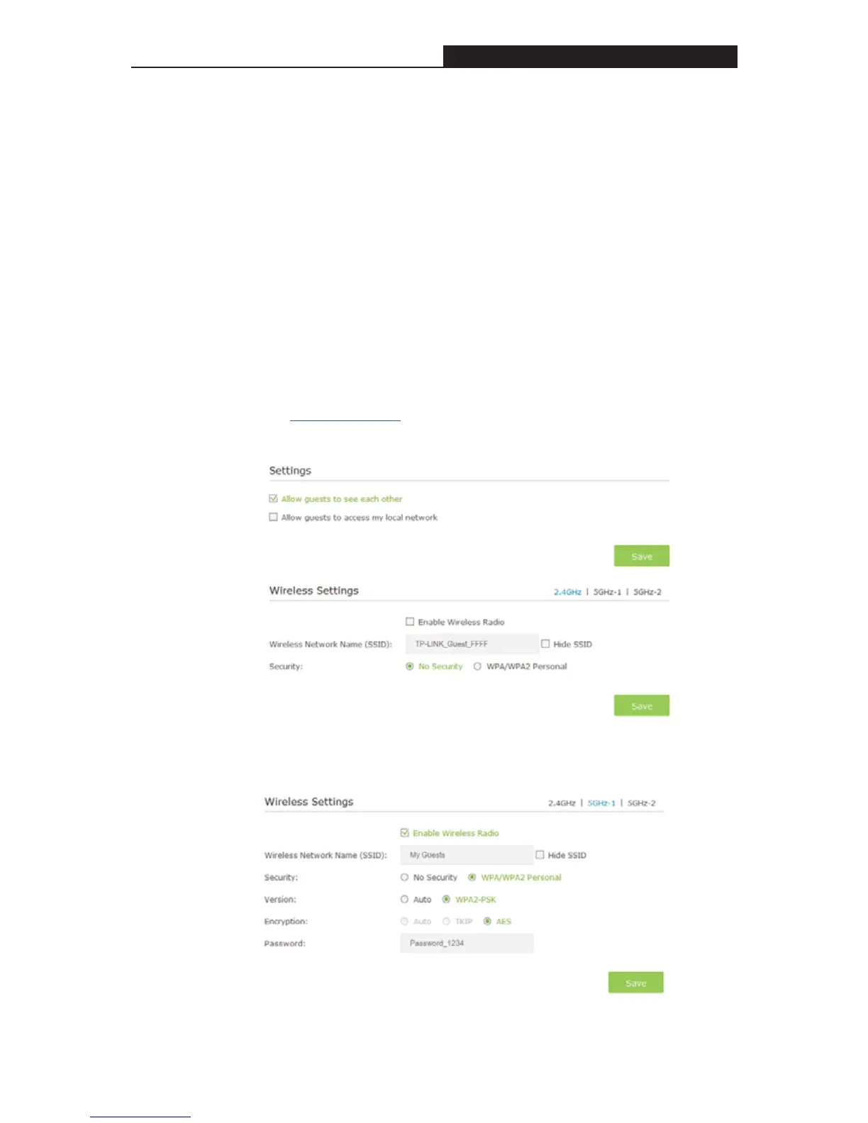 3. Enable a guest network (2.4GHz, 5GHz-1, or 5GHz), and set the network