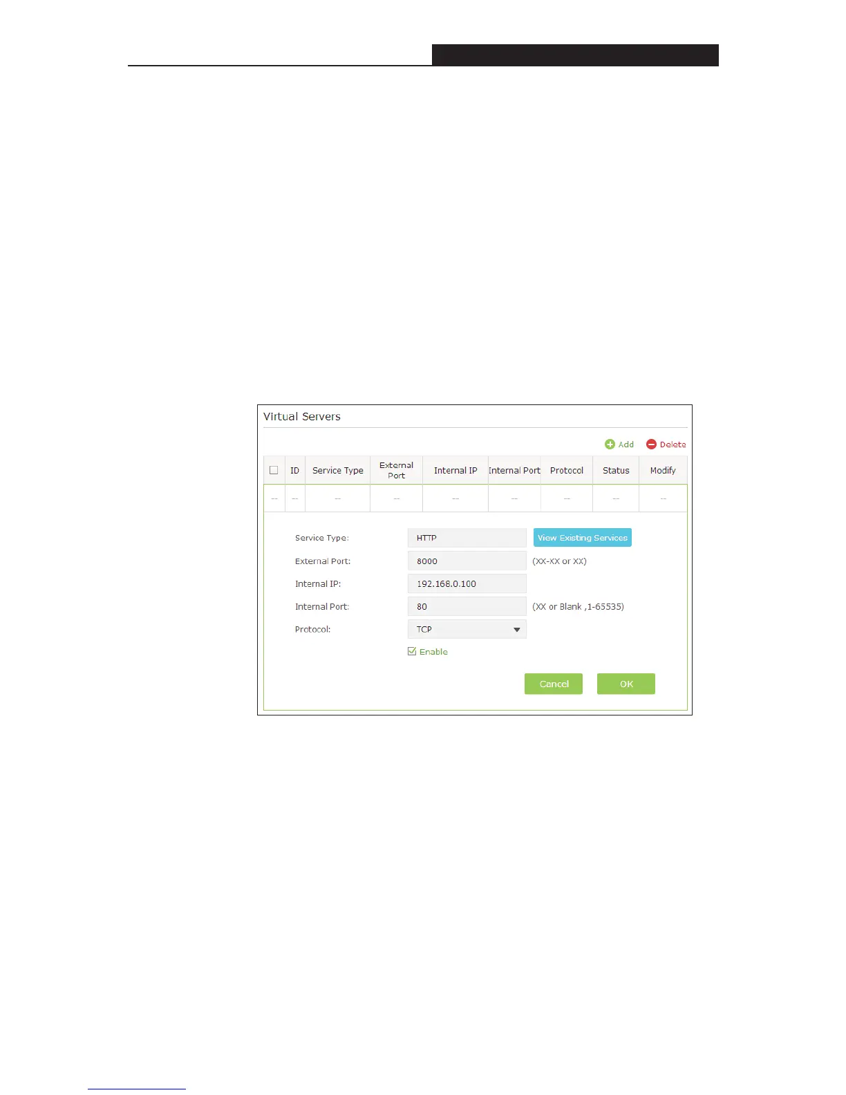 2. When HTTP is selected, External Port will be filled with default port 80