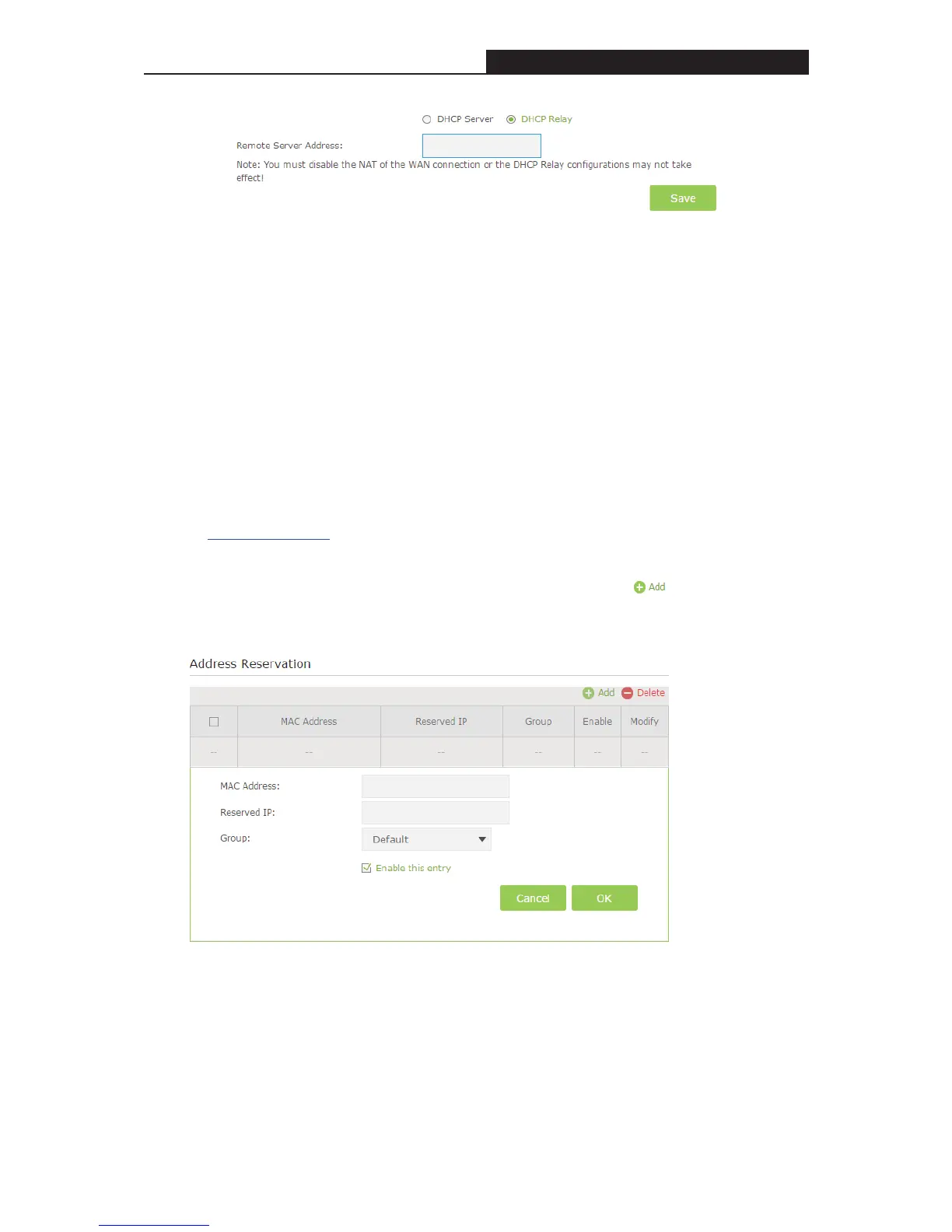 You can view and add a reserved address for a client. When you specify an IP address for a