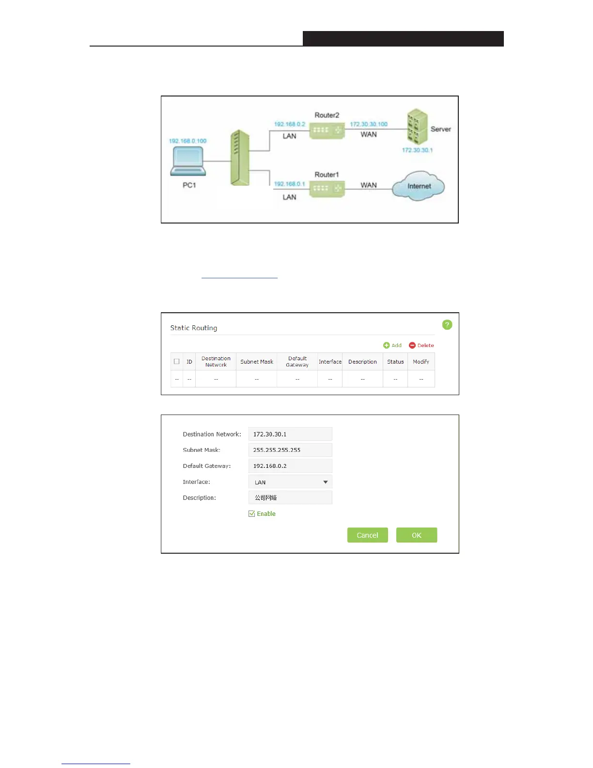 a new static routing entry.