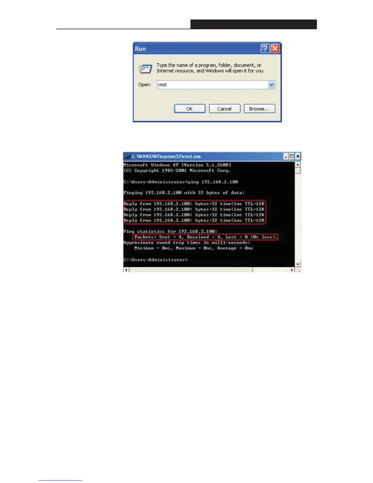 2) In the CLI window, type in “ping 192.168.2.x” (“192.168.2.x” can be IP
