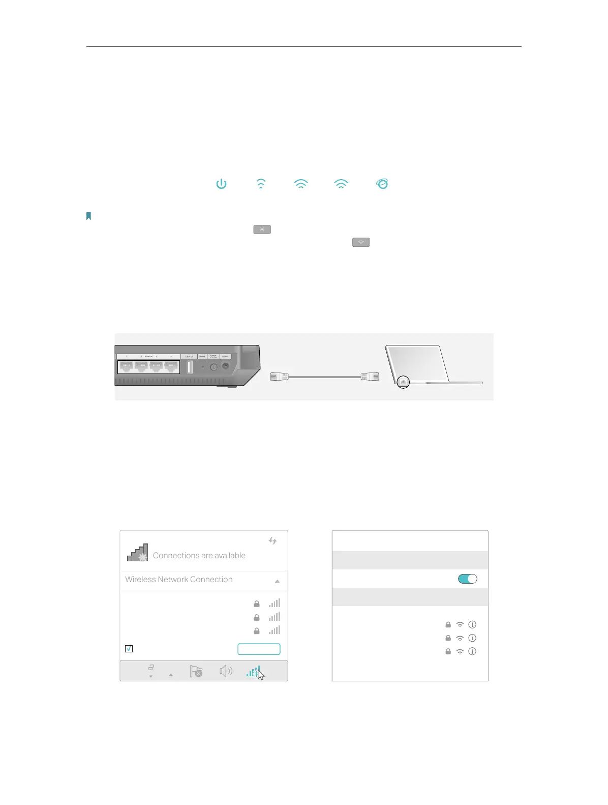 Turn off the Wi-Fi on your computer and connect the devices as shown below.