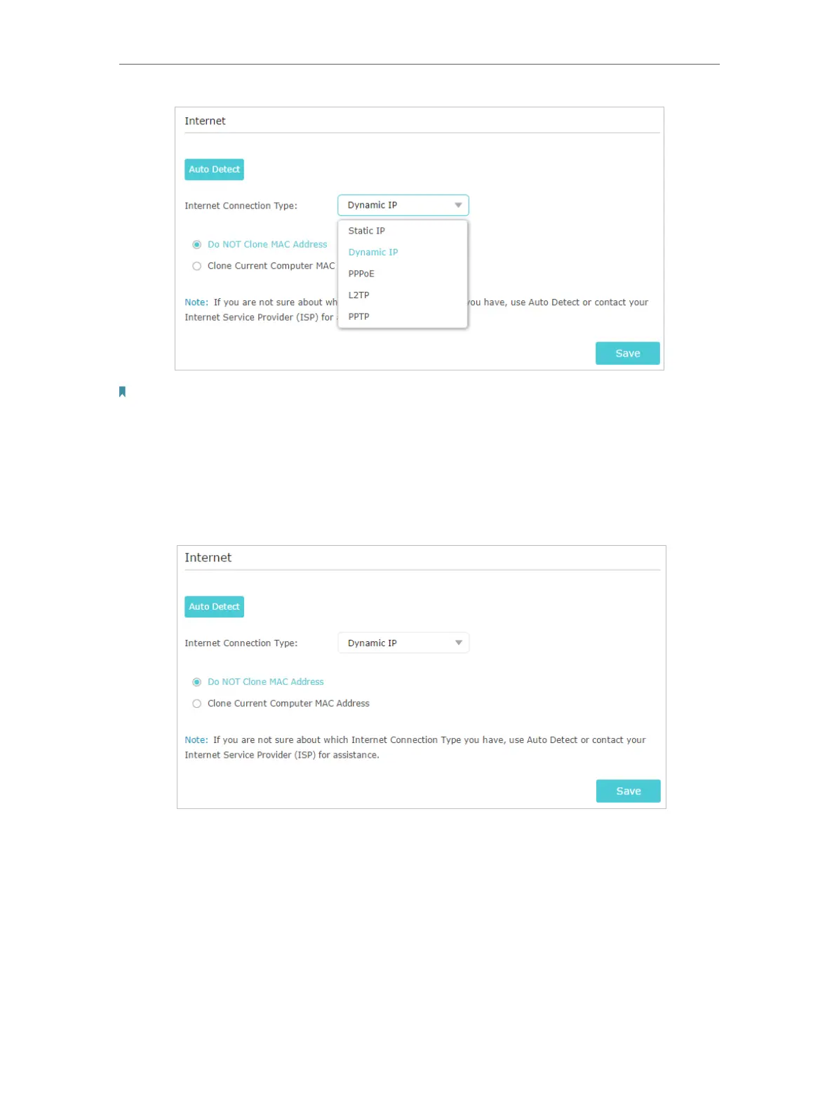 1 ) If you choose Dynamic IP, you need to select whether to clone the MAC address.