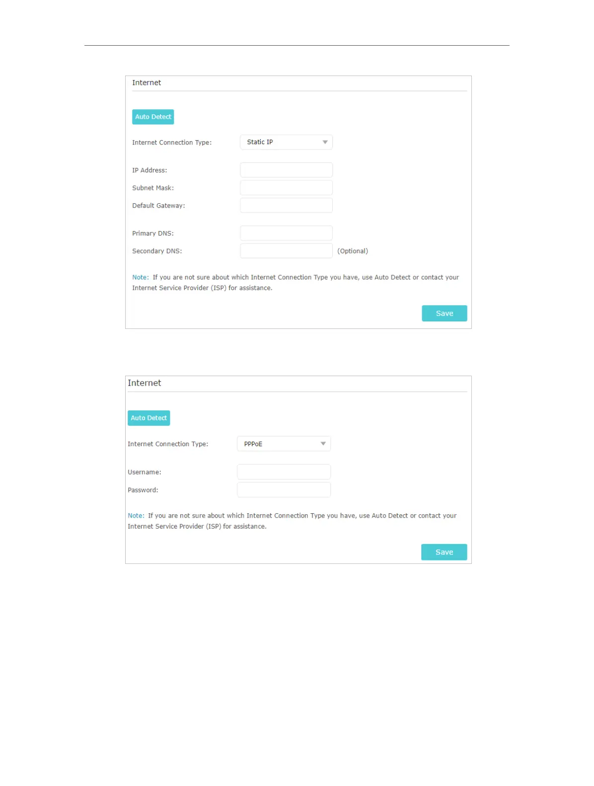3 ) If you choose PPPoE, enter the Username and Password provided by your ISP.