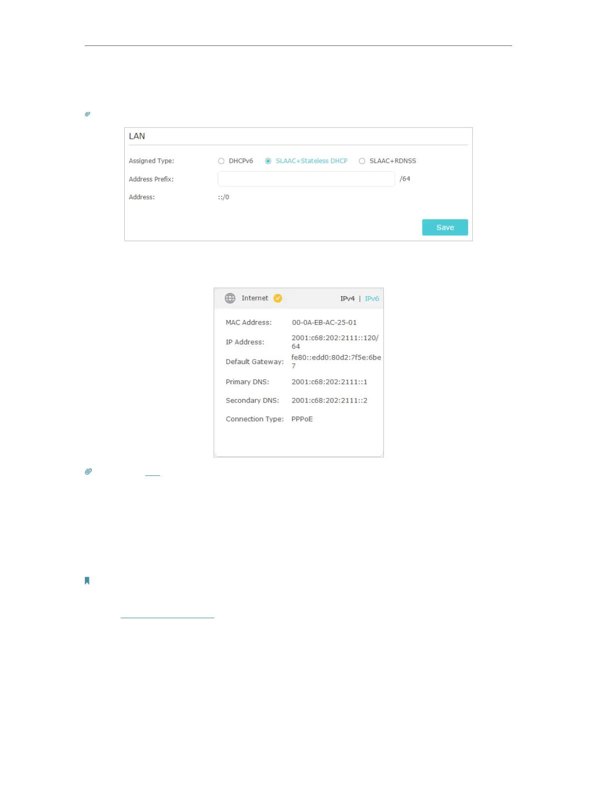 types. Fill in Address Prefix provided by your ISP, and click Save.