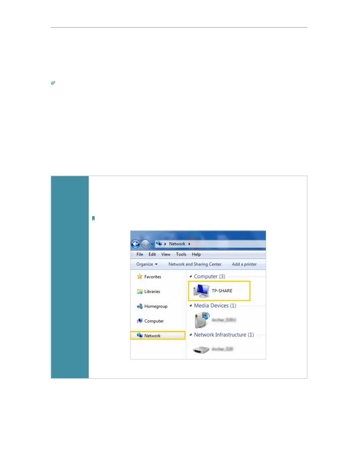 Go to Computer > Network, then click the Network Server Name (TP-