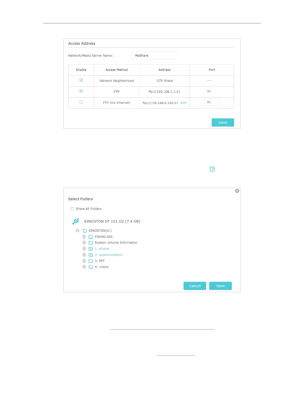 USB disk. Refer to To customize the address of the USB disk to learn more.