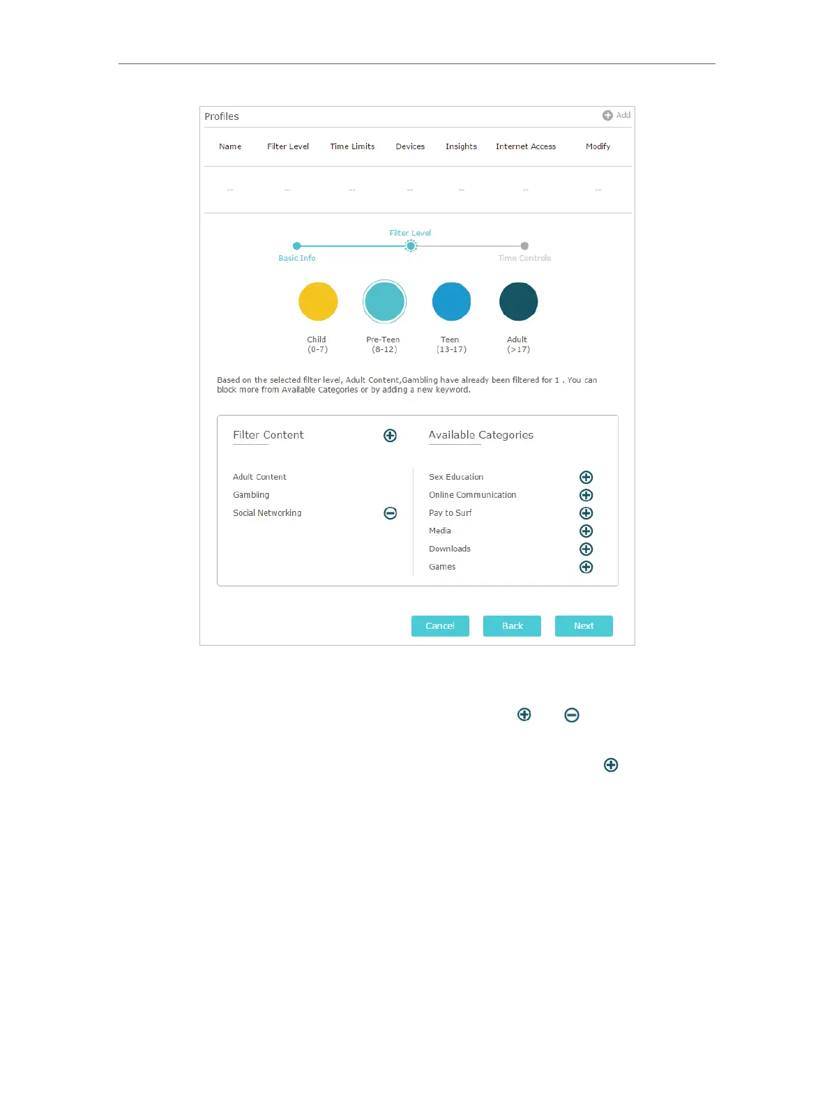 1 ) Select a filter level based on the age of the family member this profile belongs to.