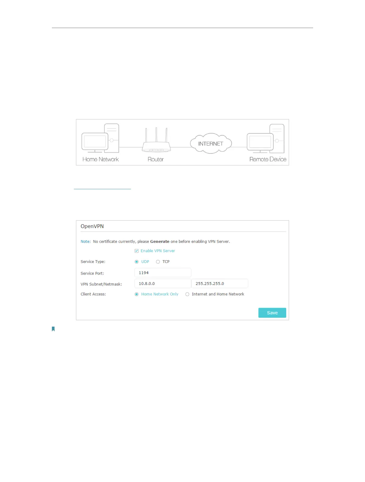 • The first time you configure the OpenVPN Server, you may need to Generate a certificate before you enable the VPN
