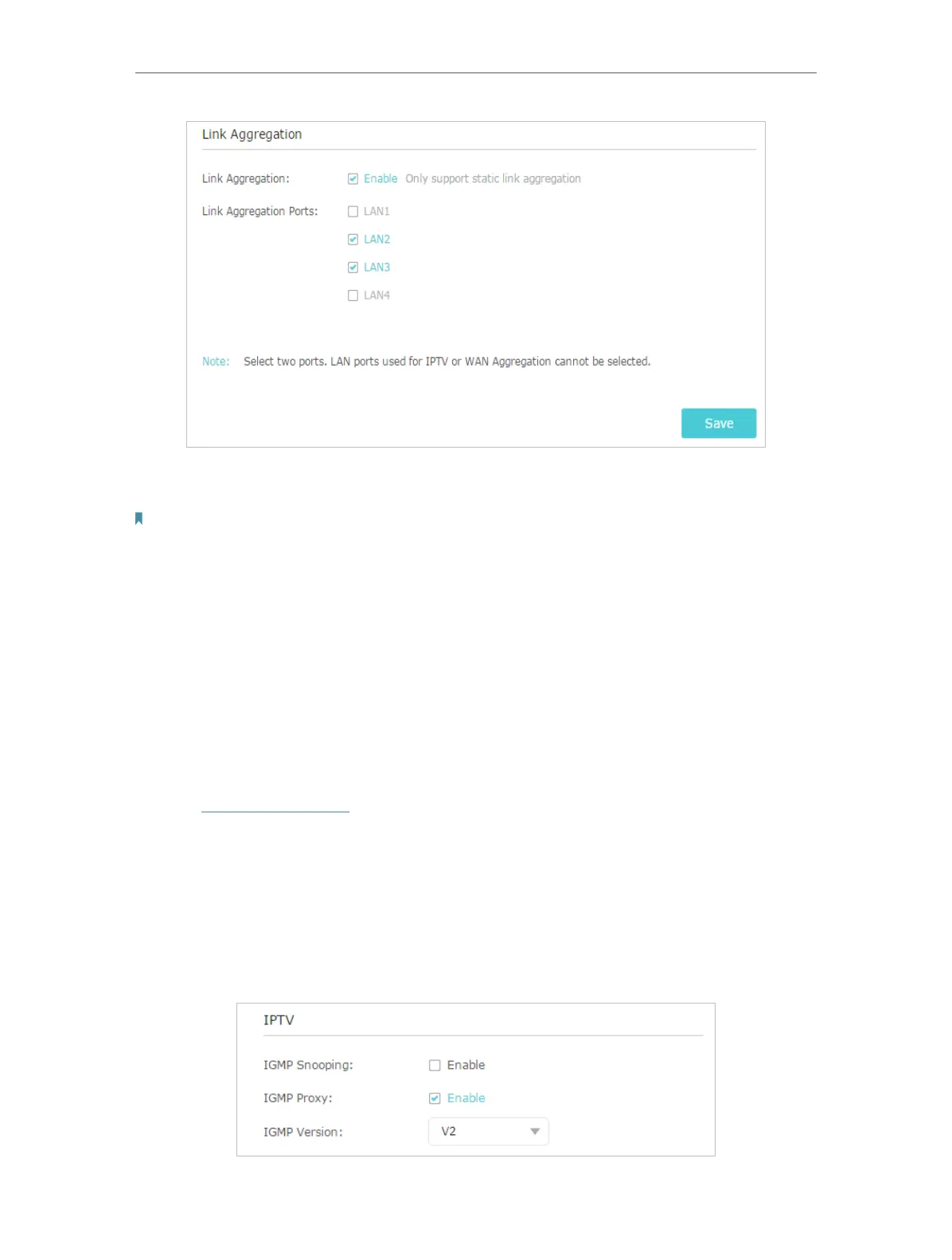 4. Specify two ports for Link Aggregation.