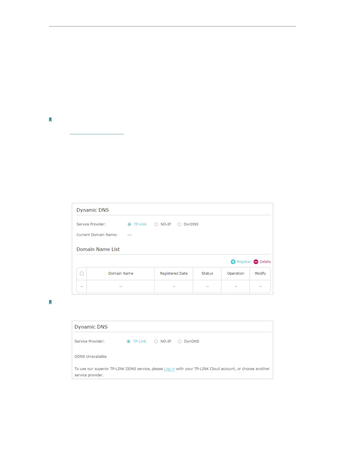 4. Click Register in the Domain Name List if you have selected TP-Link, and enter the