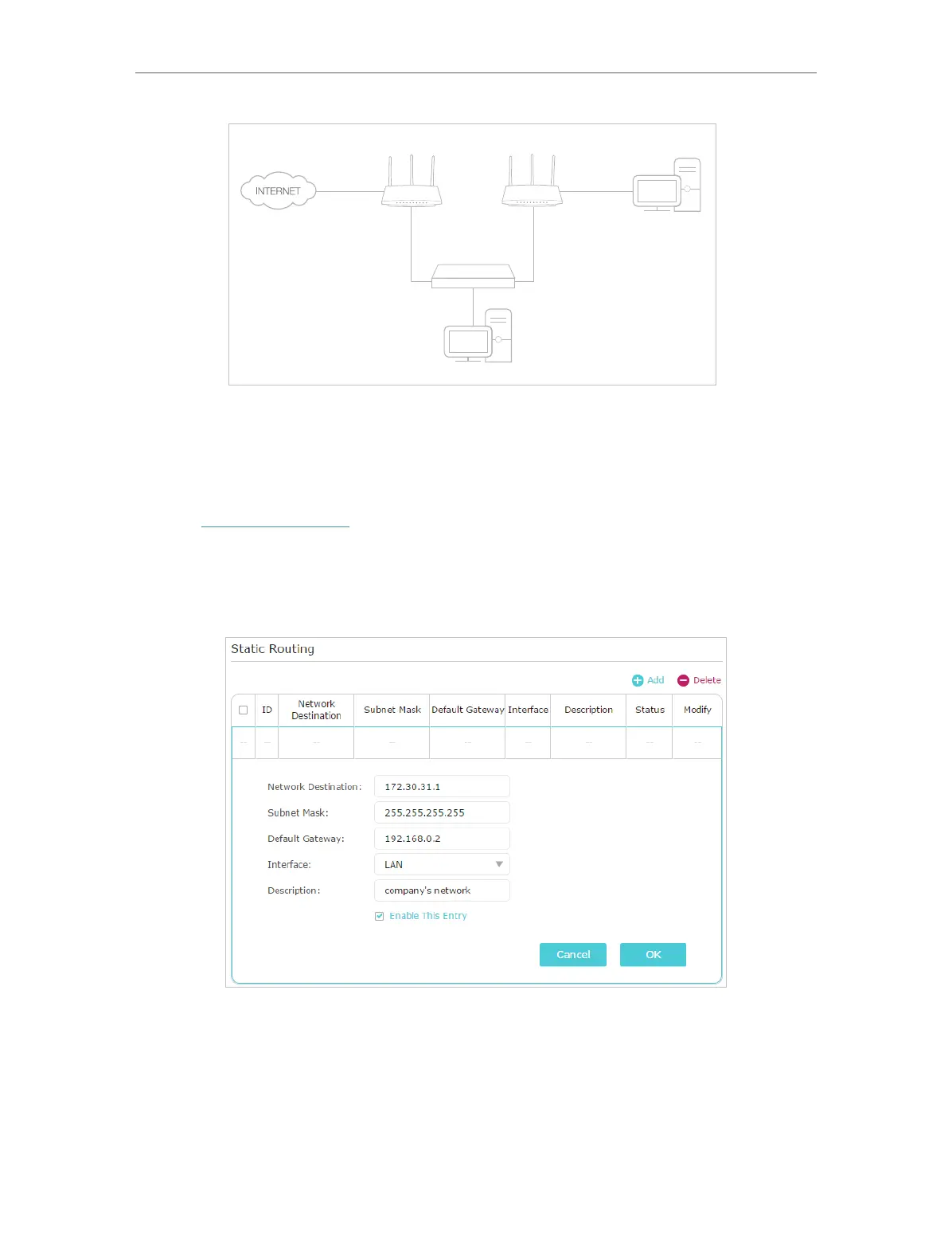 route. This IP address cannot be on the same subnet with the WAN IP or LAN IP of