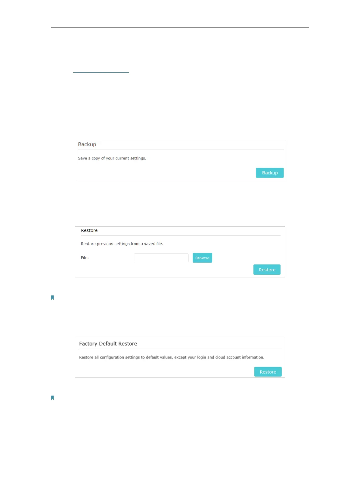 • To restore configuration settings: