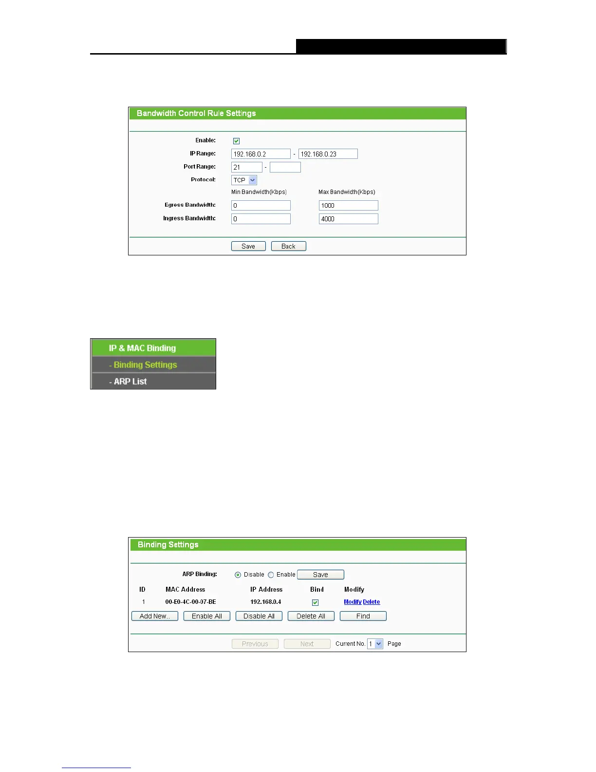 This page displays the IP & MAC Binding Setting table; you can operate it in accord with your