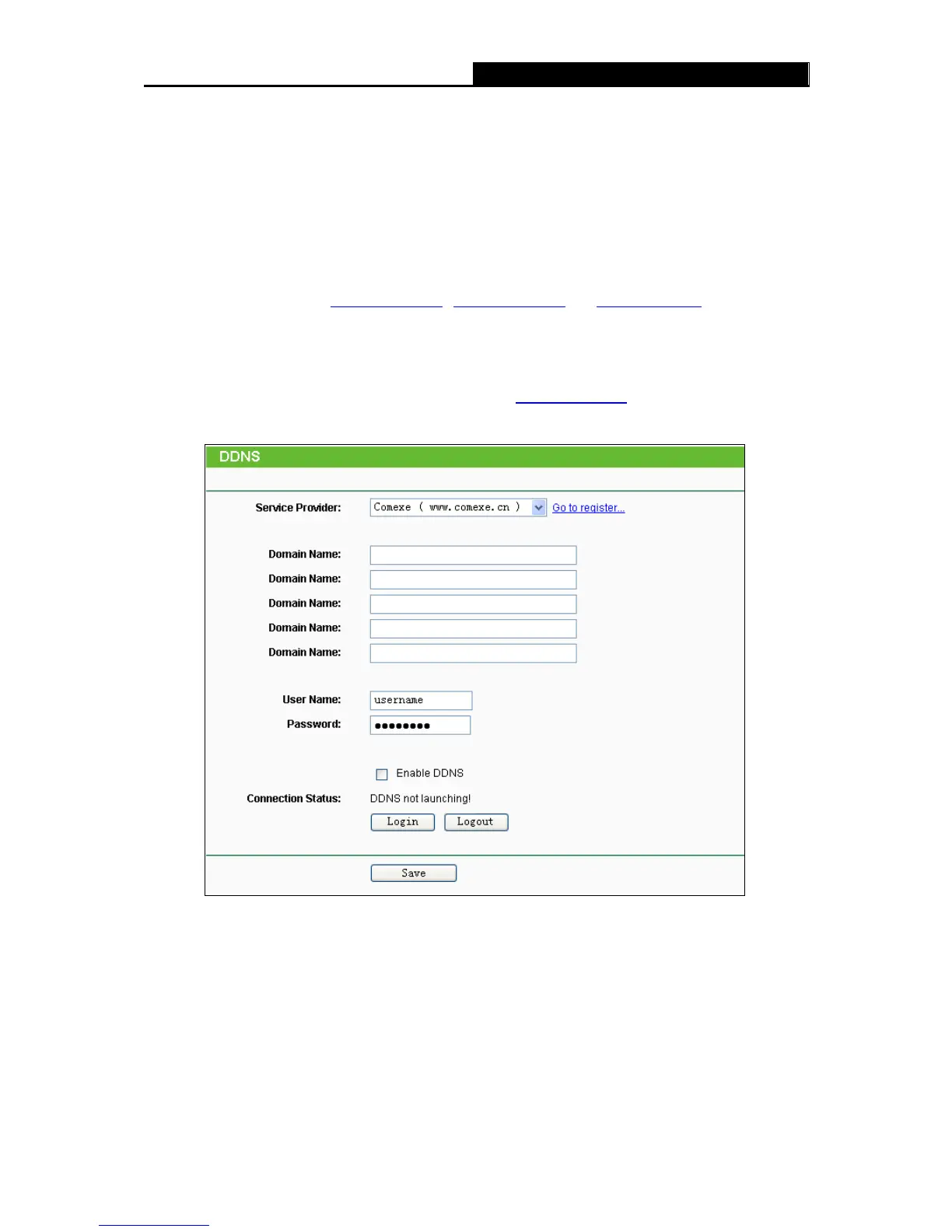 If the dynamic DNS Service Provider you select is www.comexe.cn, the page will appear as
