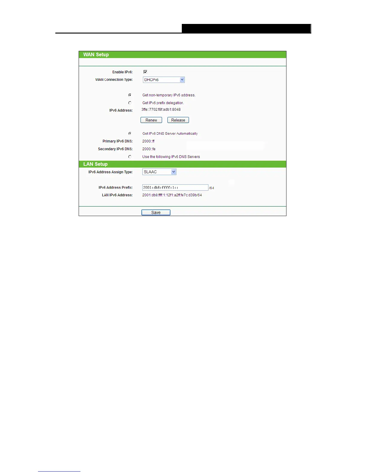 Click the Renew button to renew the IPv6 parameters from your ISP.