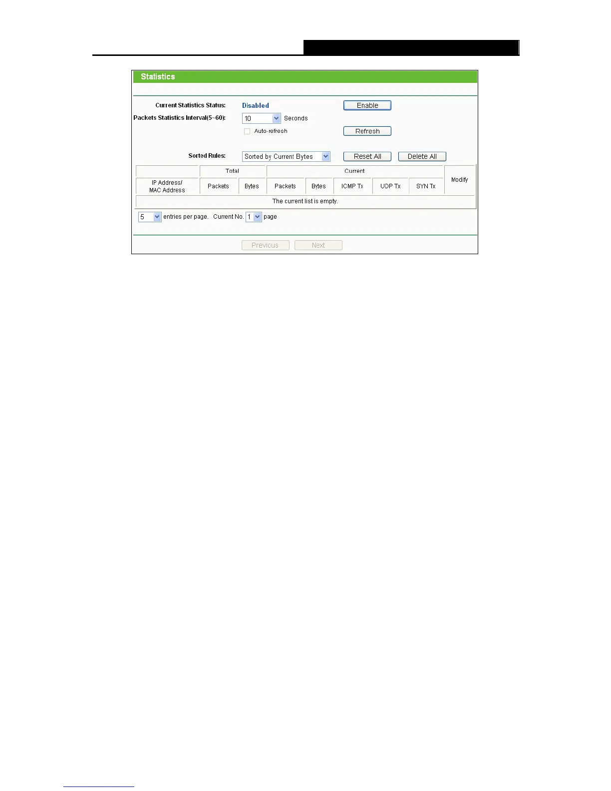 Current Statistics Status - Enable or Disable. The default value is disabled. To enable it,