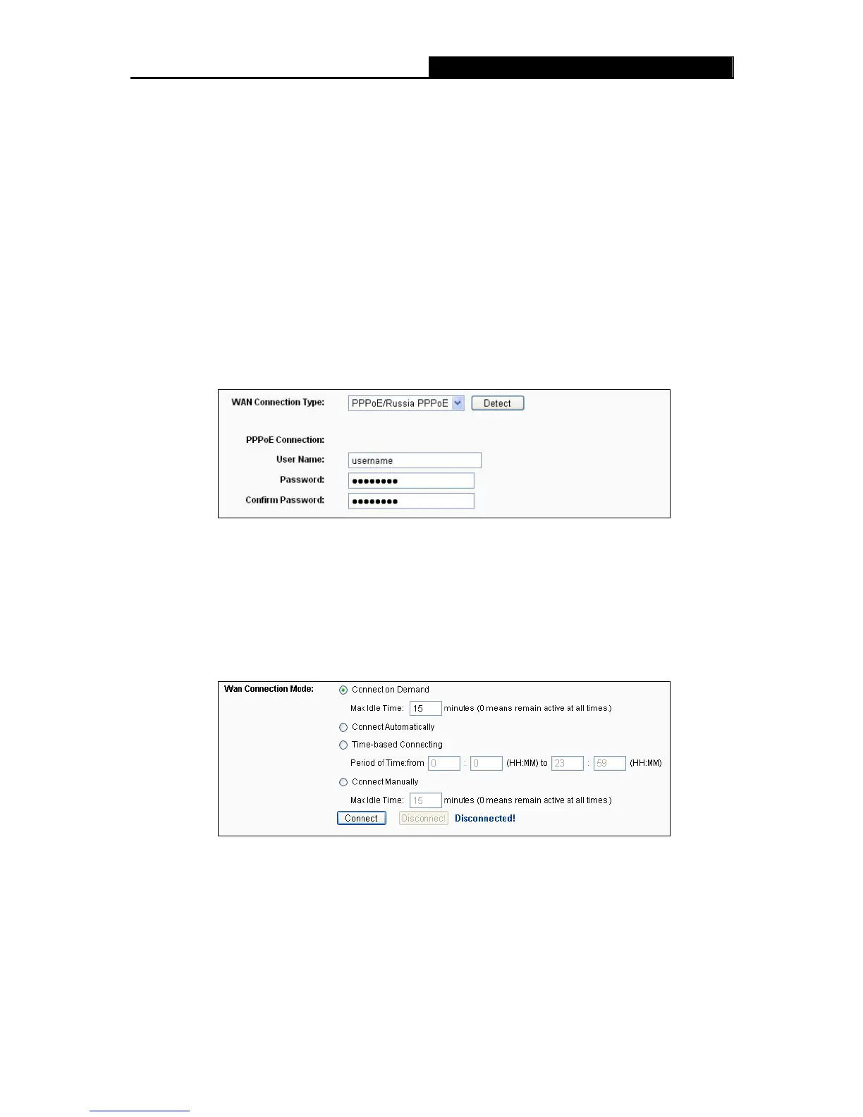 4) If your ADSL lease is in “pay-according-time” mode, select “Connect on Demand” or