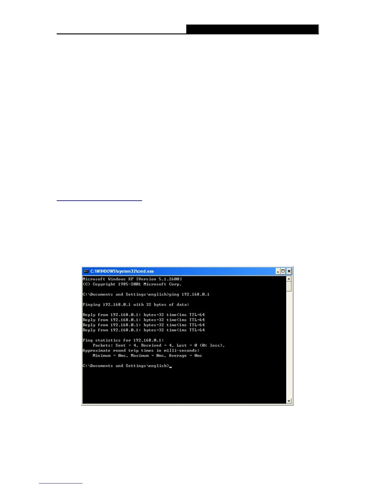 Open a command prompt, and type ping 192.168.0.1, and then press Enter.