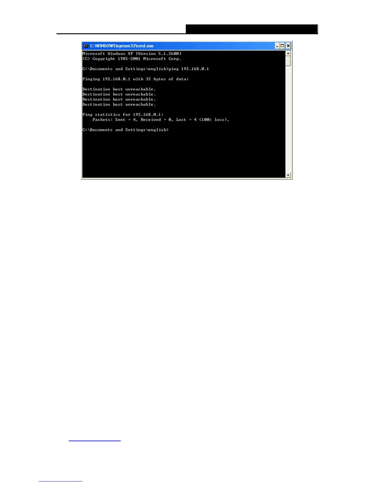 Figure 3-2 Failure result of Ping command