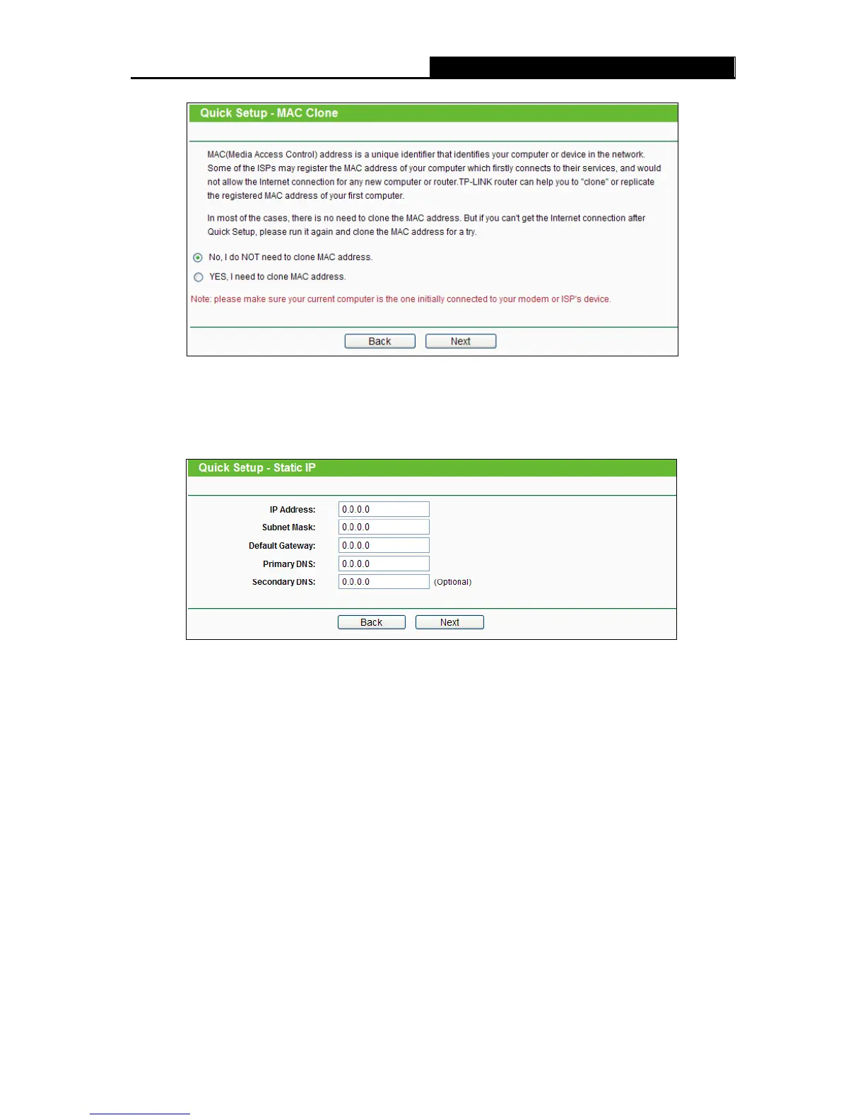 2) If the connection type detected is Static IP, the next screen will appear as shown in