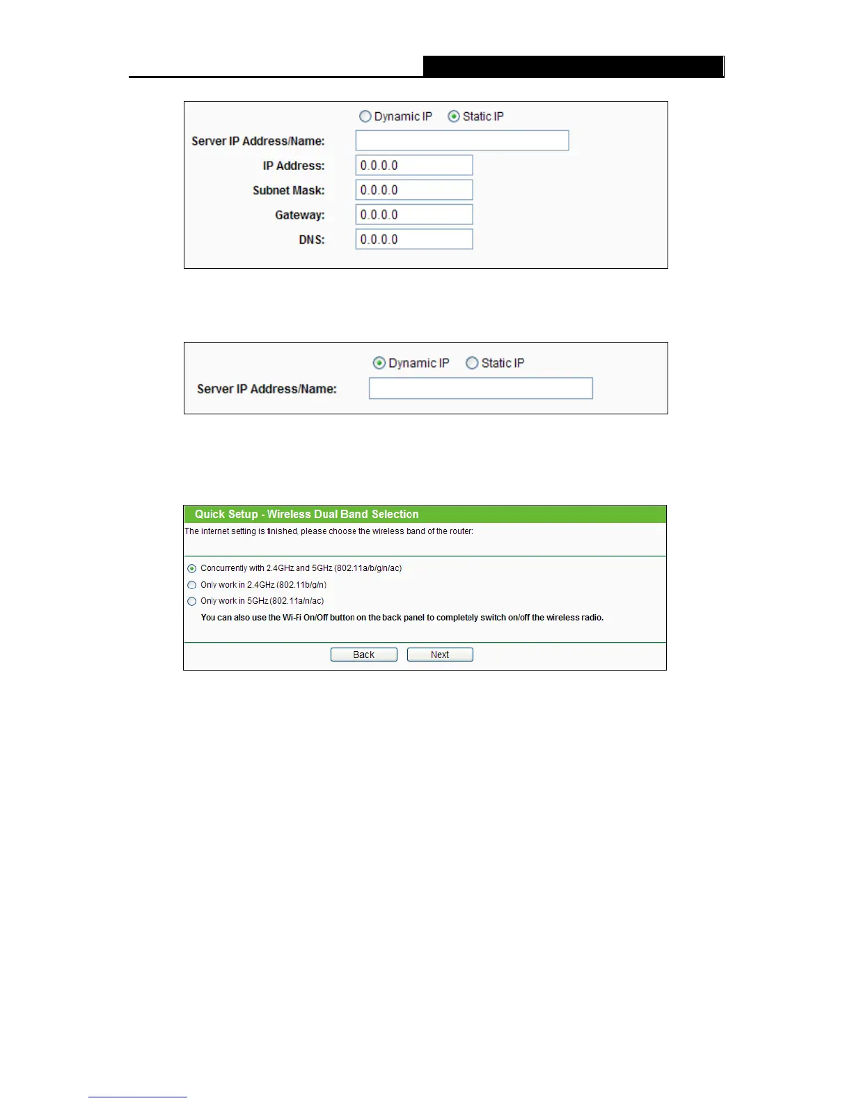 Figure 3-12 Quick Setup – Dual Band Selection