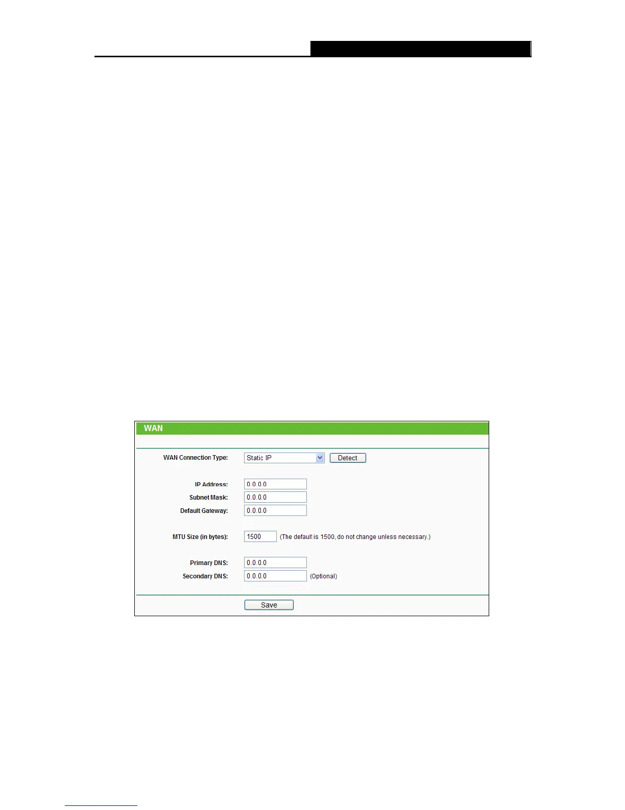 select Static IP. The Static IP settings page will appear, shown in Figure 4-4.