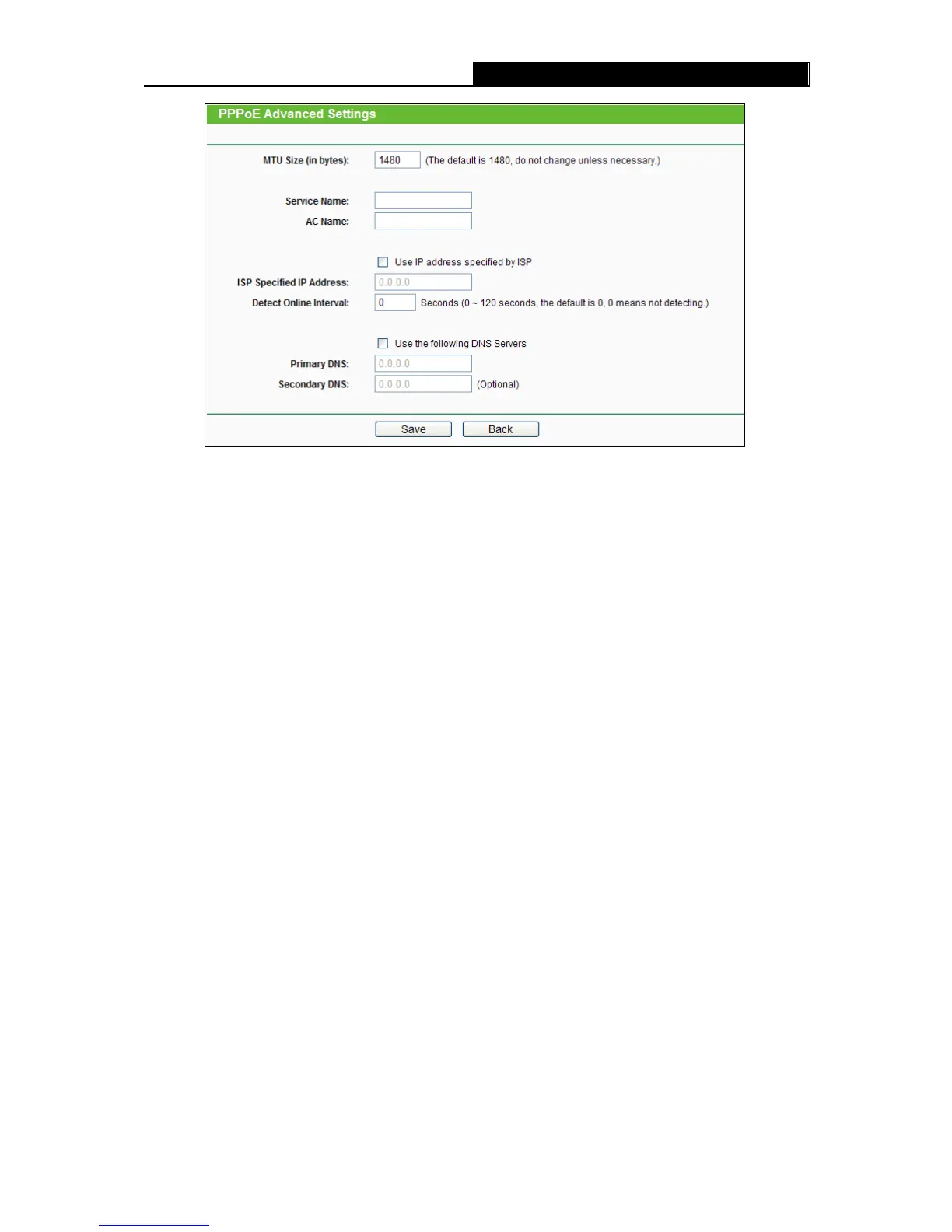 Figure 4-6 PPPoE Advanced Settings