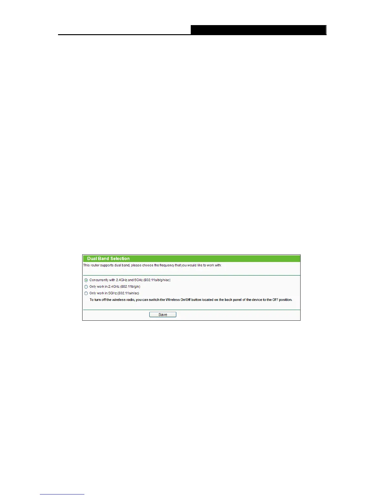 Choose menu “Dual Band Selection”, and you can choose the working frequency for your router.