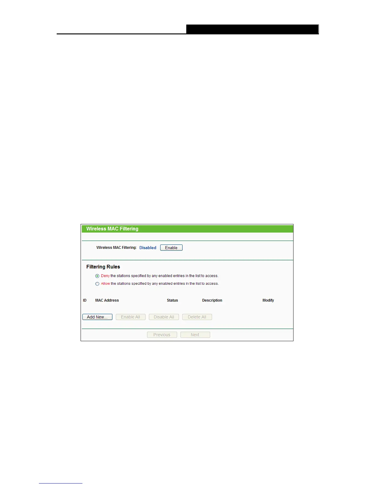 4.6.4 Wireless MAC Filtering