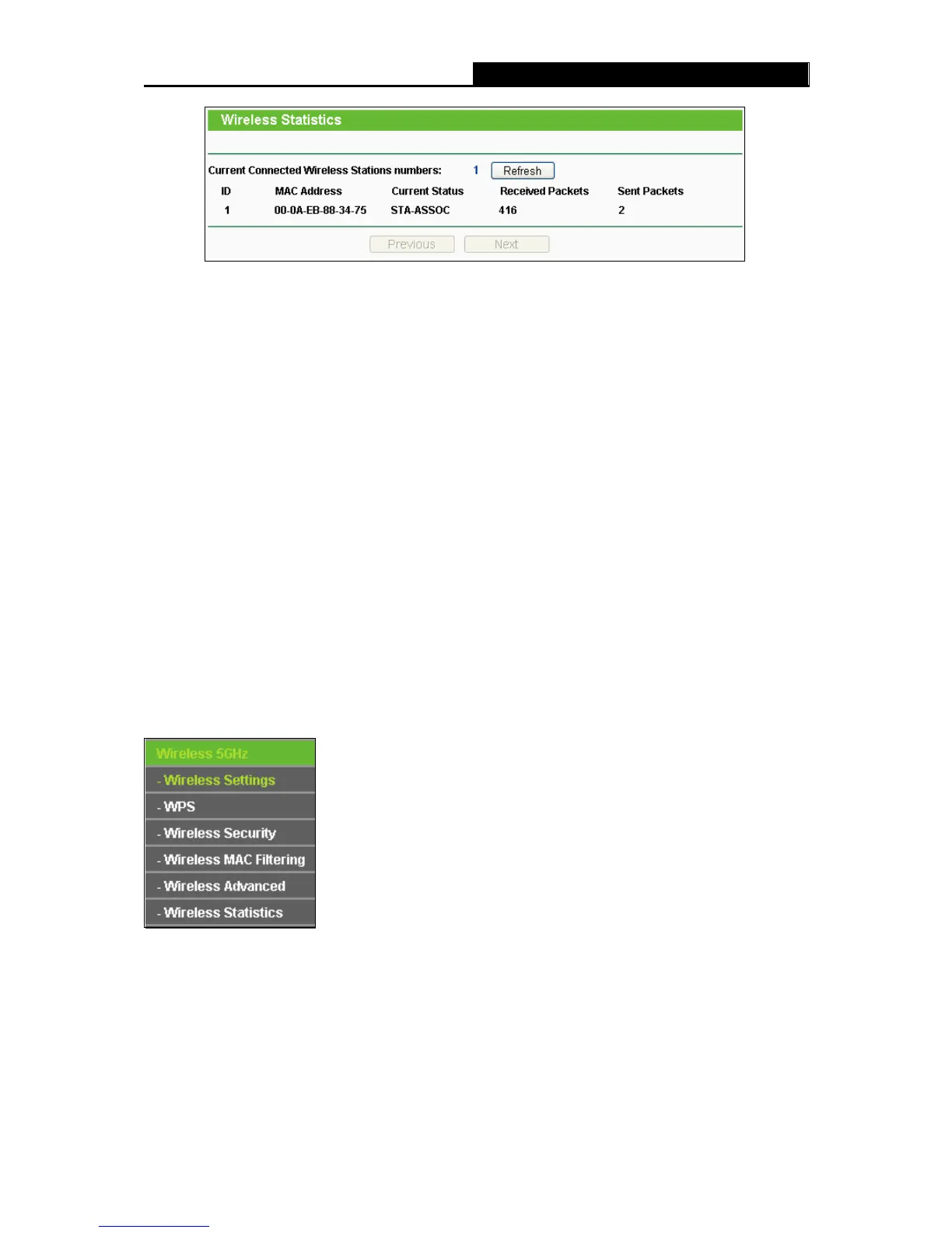 If the numbers of connected wireless stations go beyond one page, click the Next button to go to