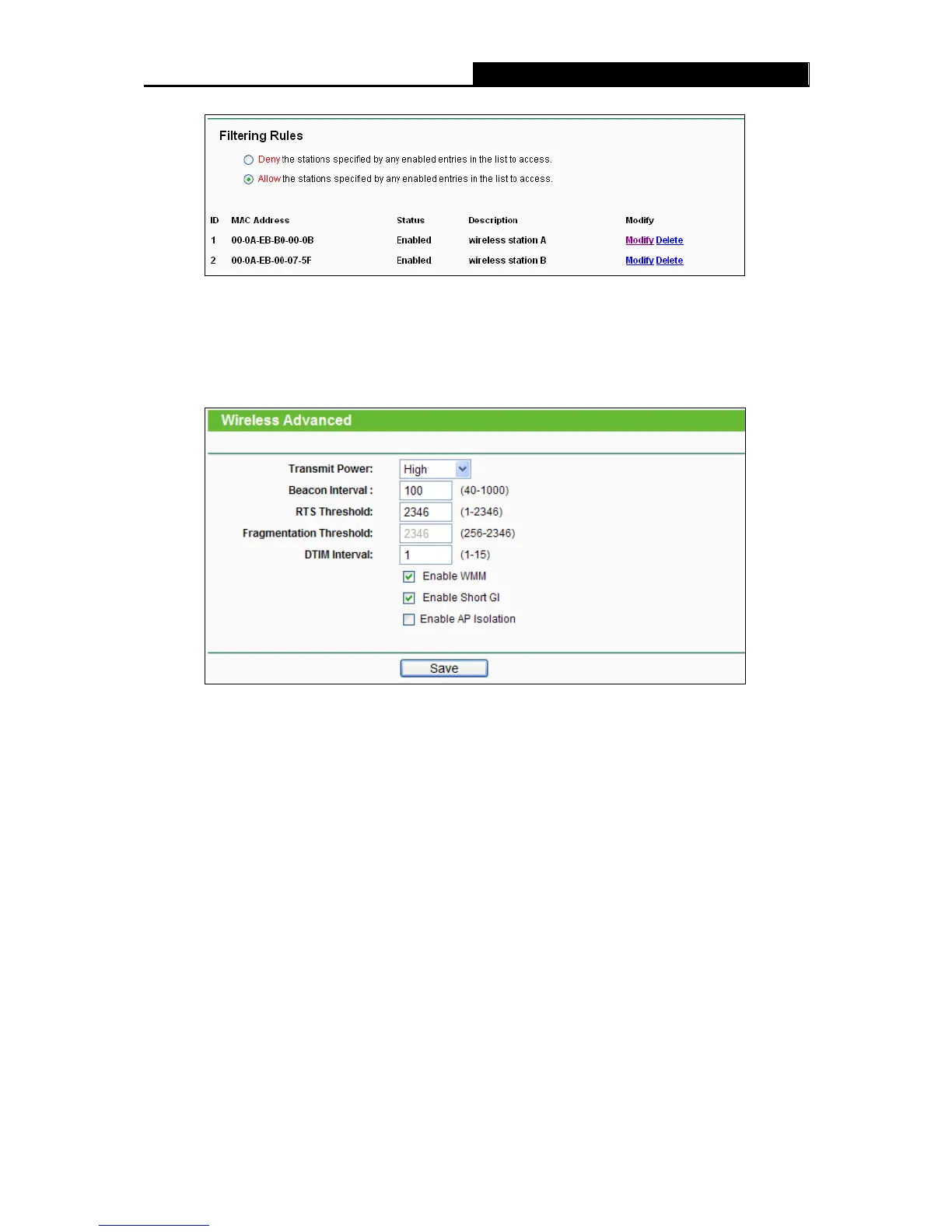 Wireless Advanced”, you can configure the advanced settings of