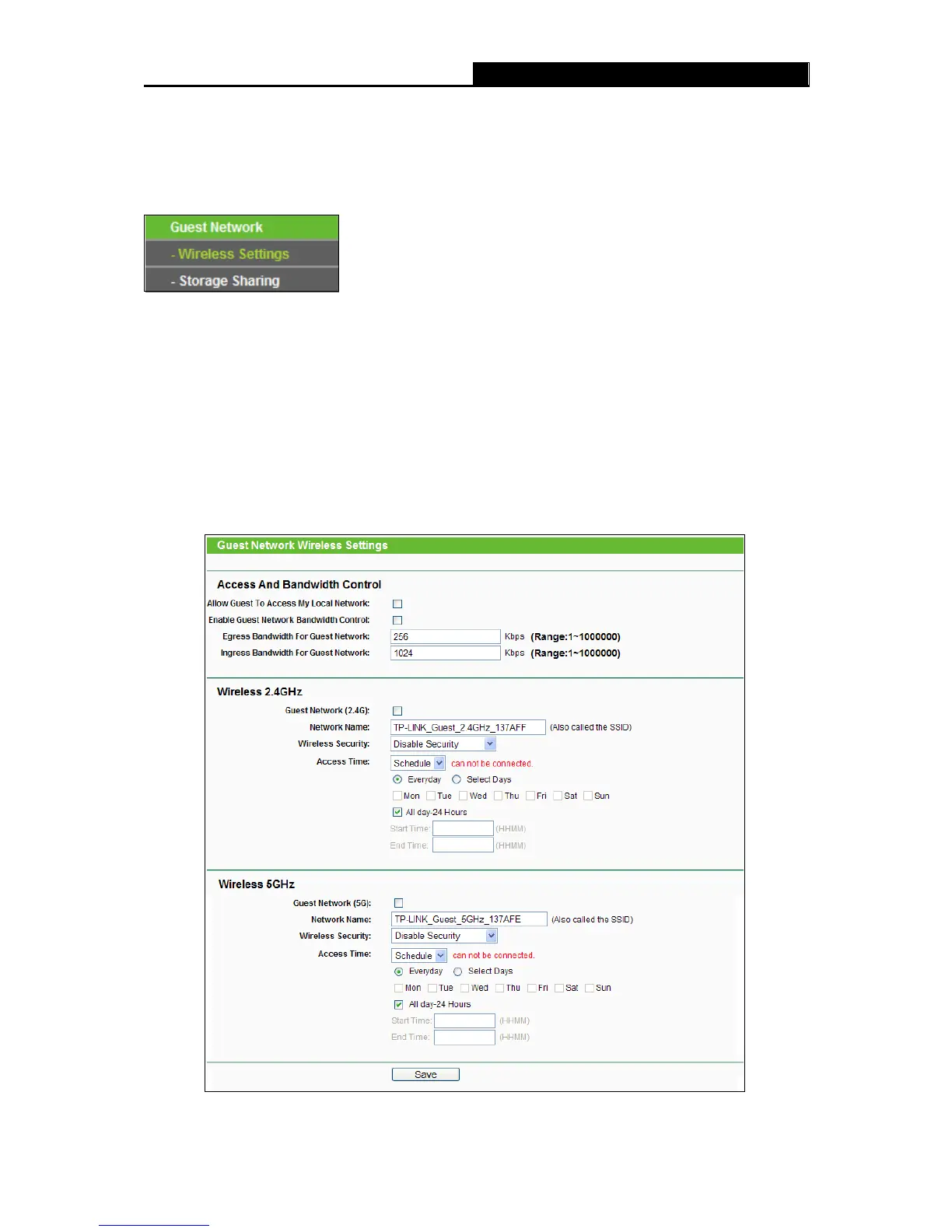 Wireless Settings”, you can configure the Guest Network