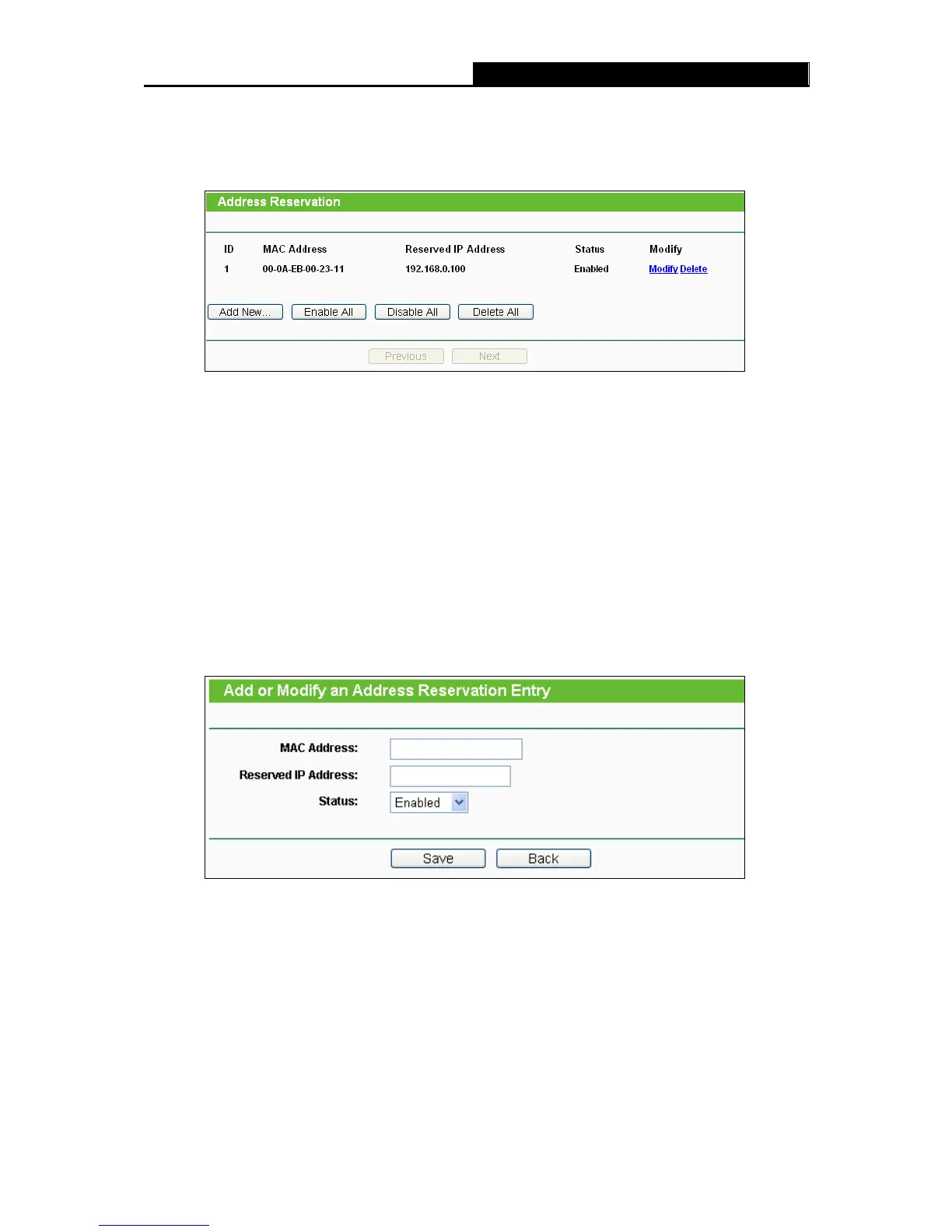 Figure 4-51 Add or Modify an Address Reservation Entry
