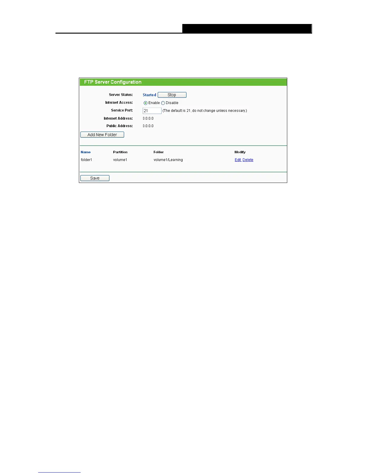 Internet Access - Select enable to allow access of the FTP server from the Internet.