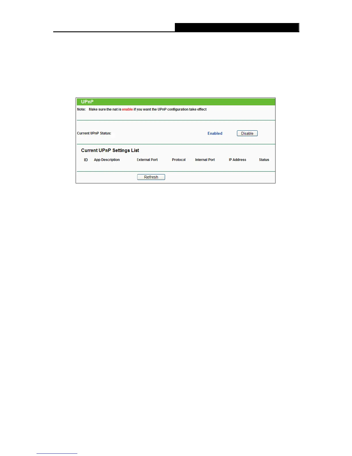 Current UPnP Status - UPnP can be enabled or disabled by clicking the Enable or Disable