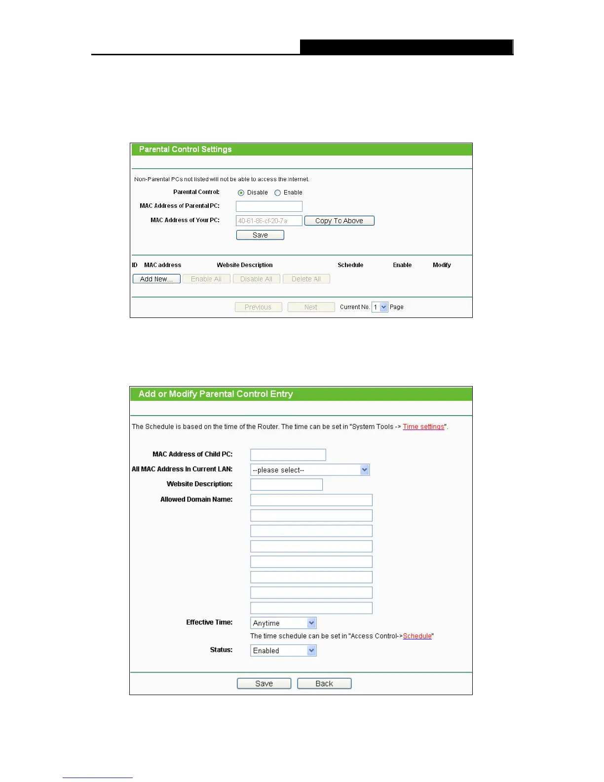 as shown in Figure 4-77. The Parental Control function can be used to control the internet
