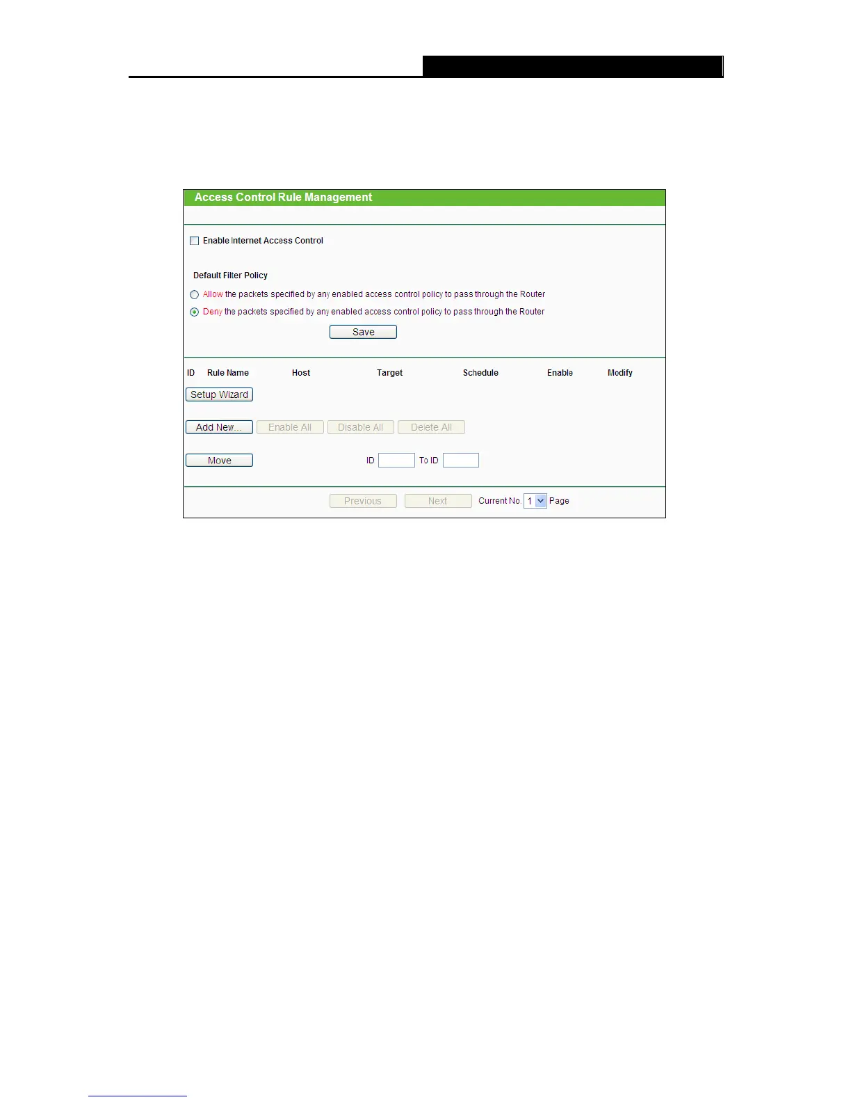 Enable Internet Access Control - Select the check box to enable the Internet Access