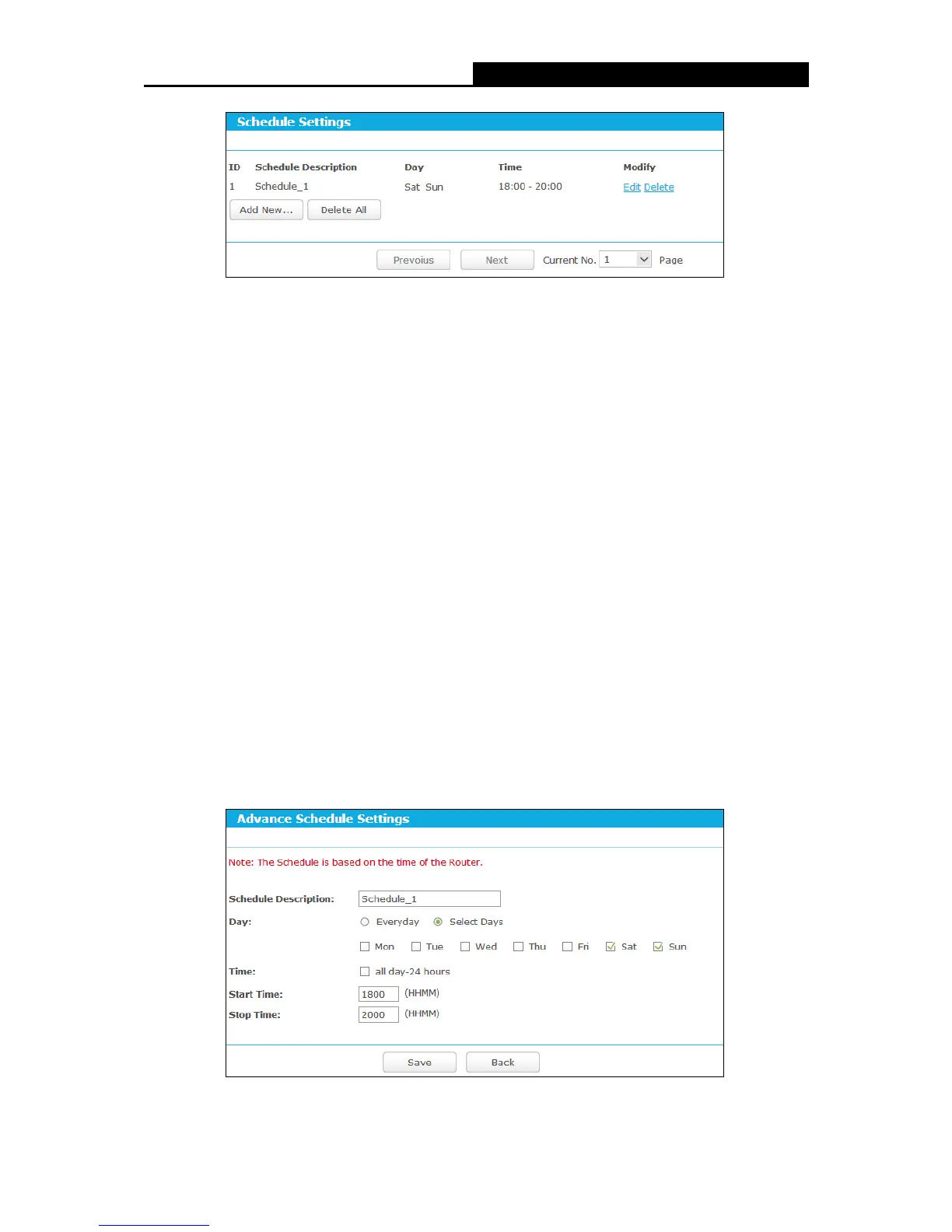 Figure 5-77 Schedule Settings
