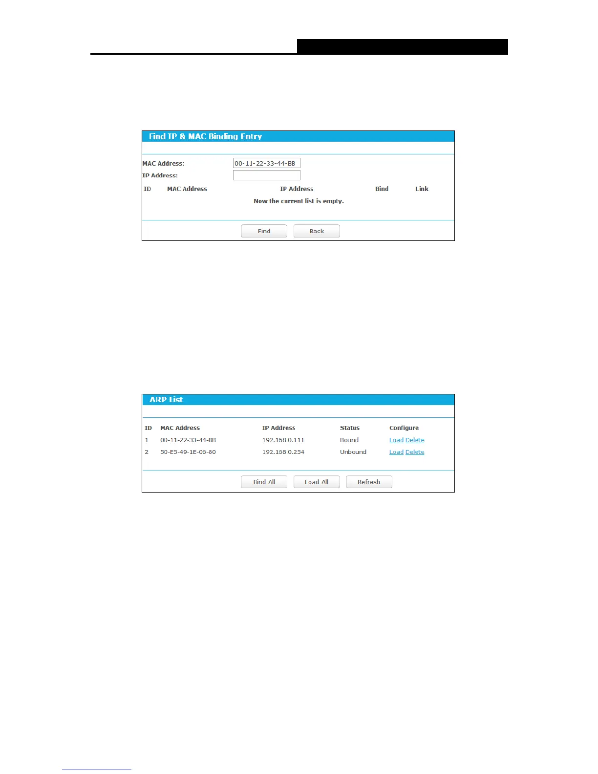 Click the Load All button to load all items to the IP & MAC Binding list.