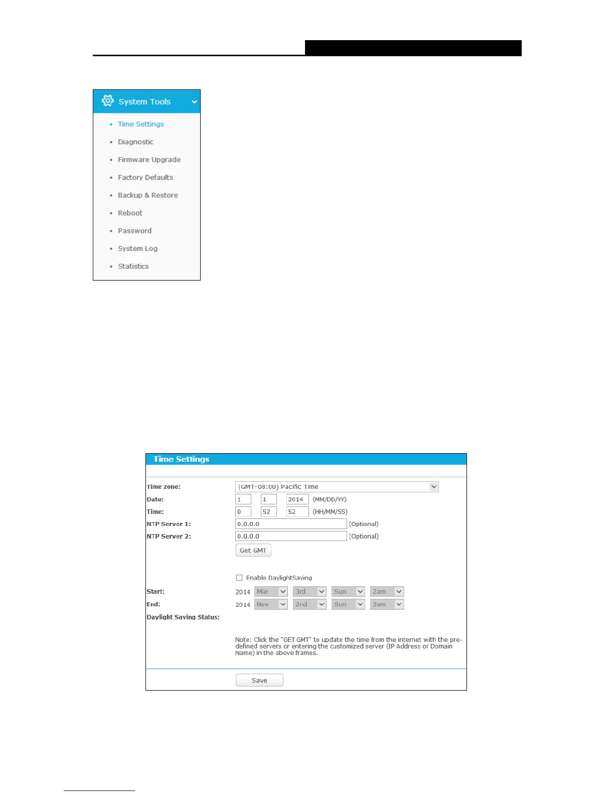 Choose menu “System Tools”, and you can see the submenus under the main menu: Time