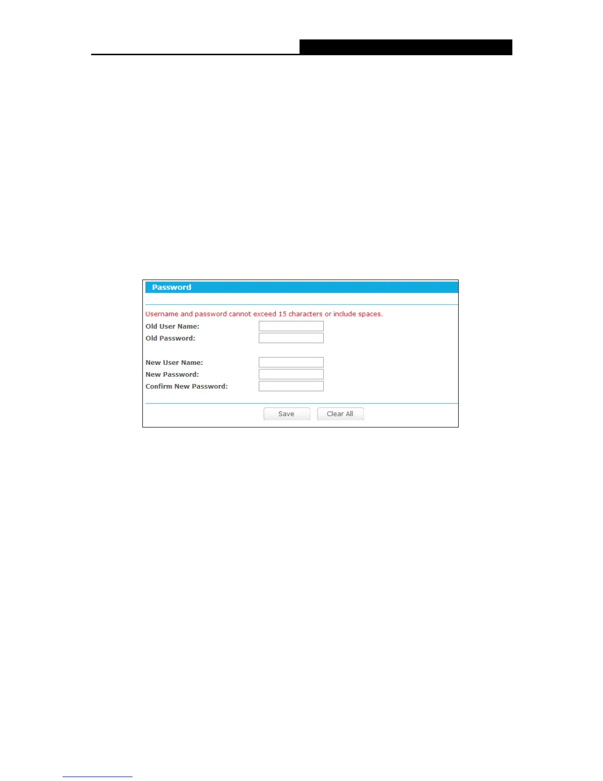 The new user name and password must not exceed 15 characters in length and not include any